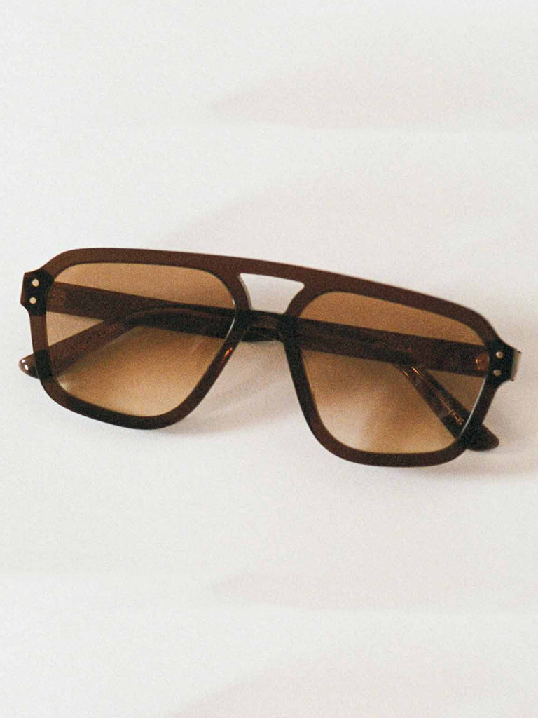 The rich brown Cola colourway is achieved by mixing organic color powder with raw biodegradable cellulose acetate. The result is a highly durable, hypoallergenic material, made from renewable resources. The crystal clear polished surface is achieved by tumbling the components of the frames in barrels filled with small pieces of wood coated with oil, paste, and other natural materials, and then hand-buffed by us and our team of technicians.