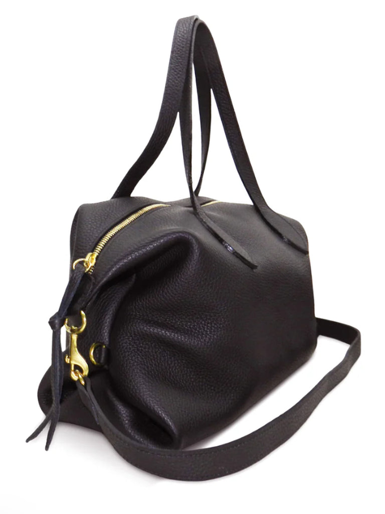 An easy convertible satchel with optional shoulder strap. Made of unlined Italian Buffalo Cowhide Leater. Includes an interior open pocket, zipper pocket and four card slots.