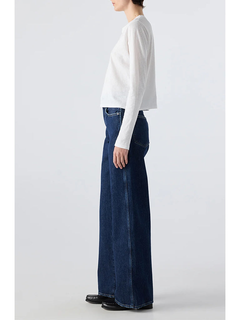 Amo's best selling high rise, wide leg silhouette is back in a dark rinse perfect for the coming season. With an easy fit through the hip and thigh and full inseam, they’re your new everyday denim. Zip fly. 100% Cotton. Machine Wash Cold. Made with love in Los Angeles.