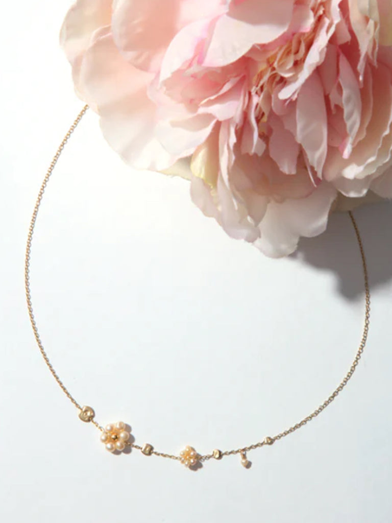 A delicate balance of pearl flowers and gold-filled beads dance along a 16" gold filled chain. Each piece from Iwona Ludyga Design is made with care and skill using inventive combinations of materials and styles.