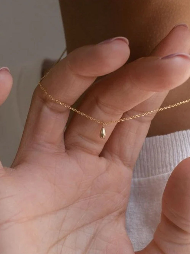 A diminutive single drop of gold, this sweet little piece feels subtle with that tiny hint of luxury.