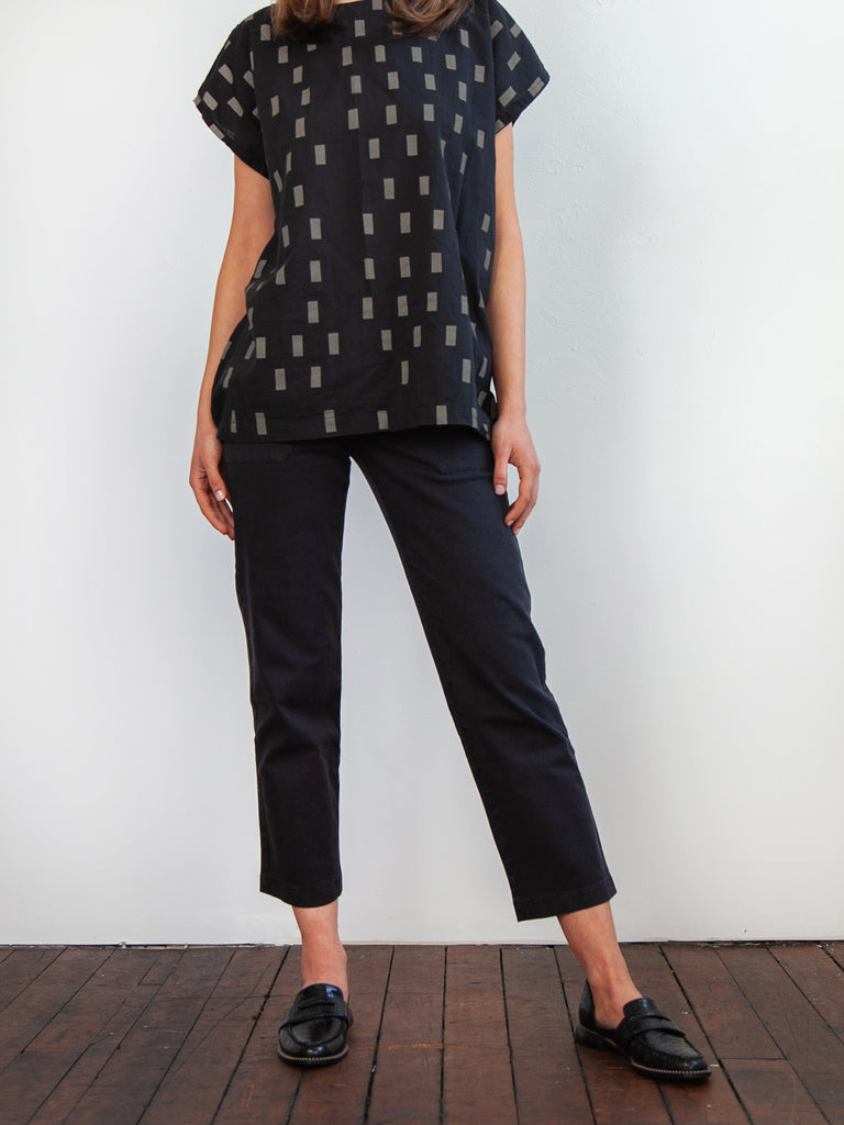 A classic "work pant" with Loup's classic high waist and perfect butt fit! Made from washed stretch cotton twill and featuring front and back pocket, belt loops and a button fly.