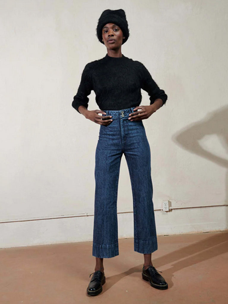 The Luna Pant 2.0 does not have a side seam, so they're über flattering through the hips. The rise is strategically placed to cinch and flatter the waist with a slim fit through the hip and thigh. Back patch pockets, and all-natural seashell buttons with a zip fly. A straight leg with a 28" inseam and a chunky cuff that can be let out for even longer inseams.