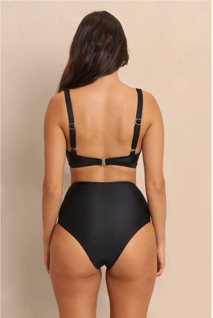 A flattering high waist bottom with front panel detail and a moderate coverage behind that will contour your shape. Mix and match to find the colour pallet that suits you.