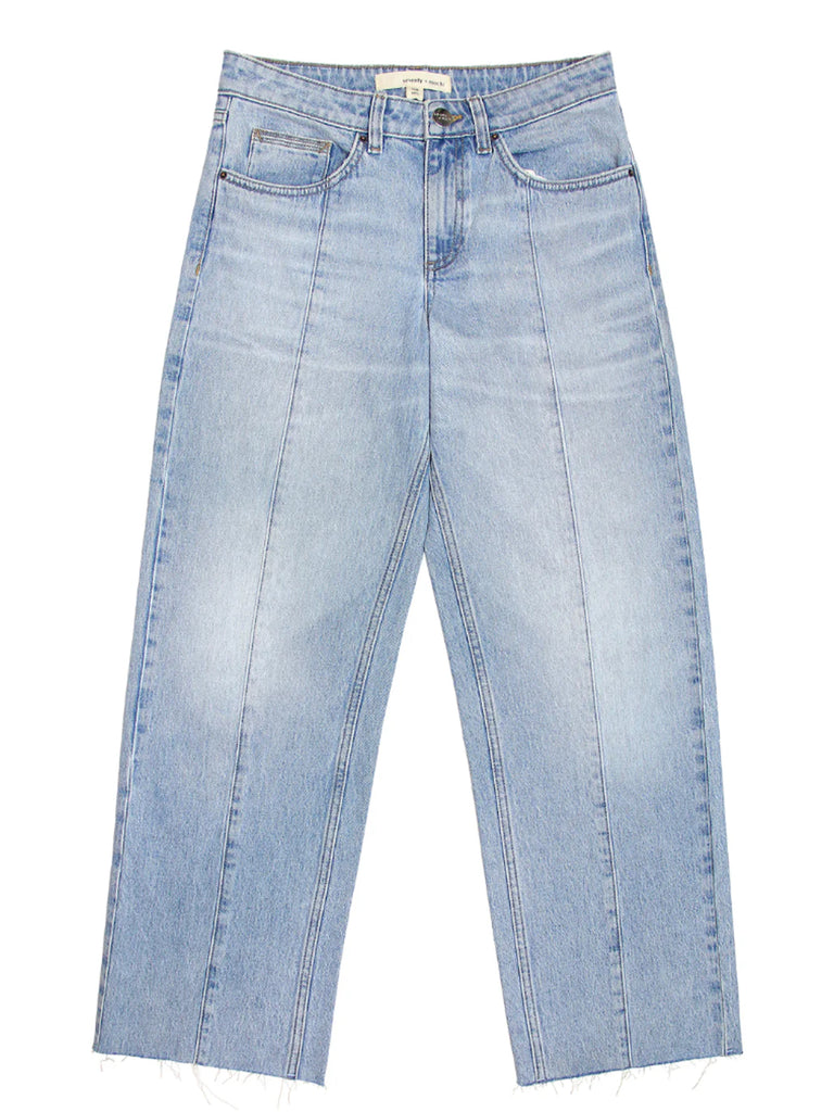 The stevie jean is a classic straight-leg blue jean with a center front seam, creating a more elevated feel. Whether it's a pablo jacket or a basic white tee, the stevie jean can be styled with anything already in your wardrobe.