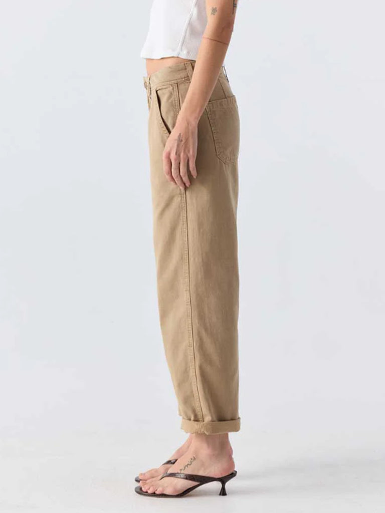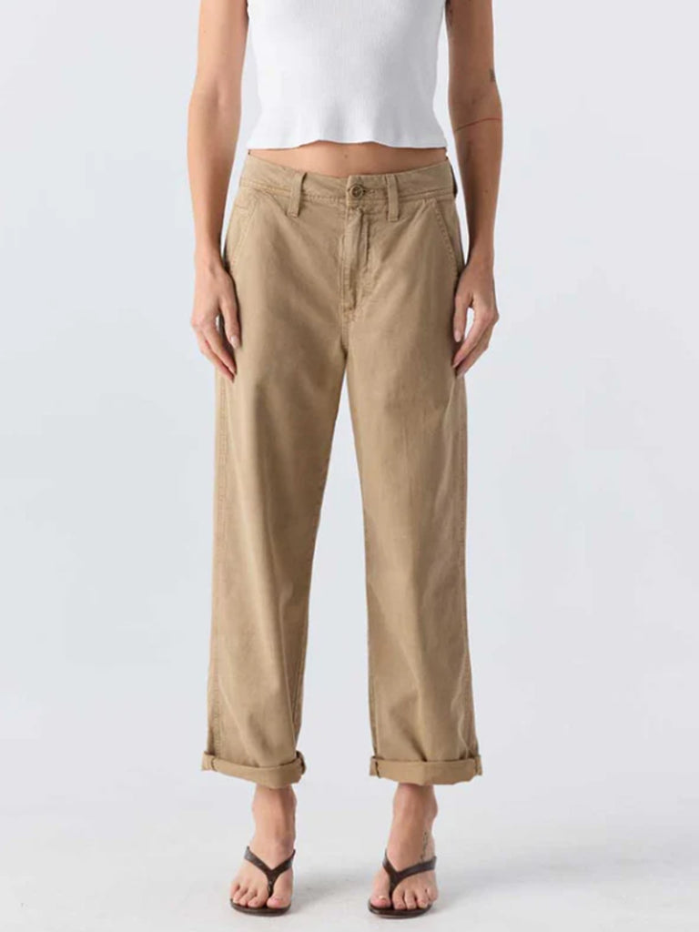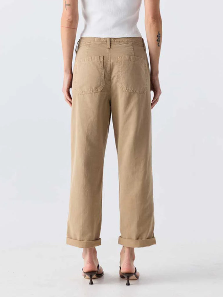 We crafted this pant with a wider leg, a slight taper, and a roll at the cuff. For fabric, we opted for a drapey, lightweight, cotton and lyocell blend. Mid rise. Cropped length. Zip fly.