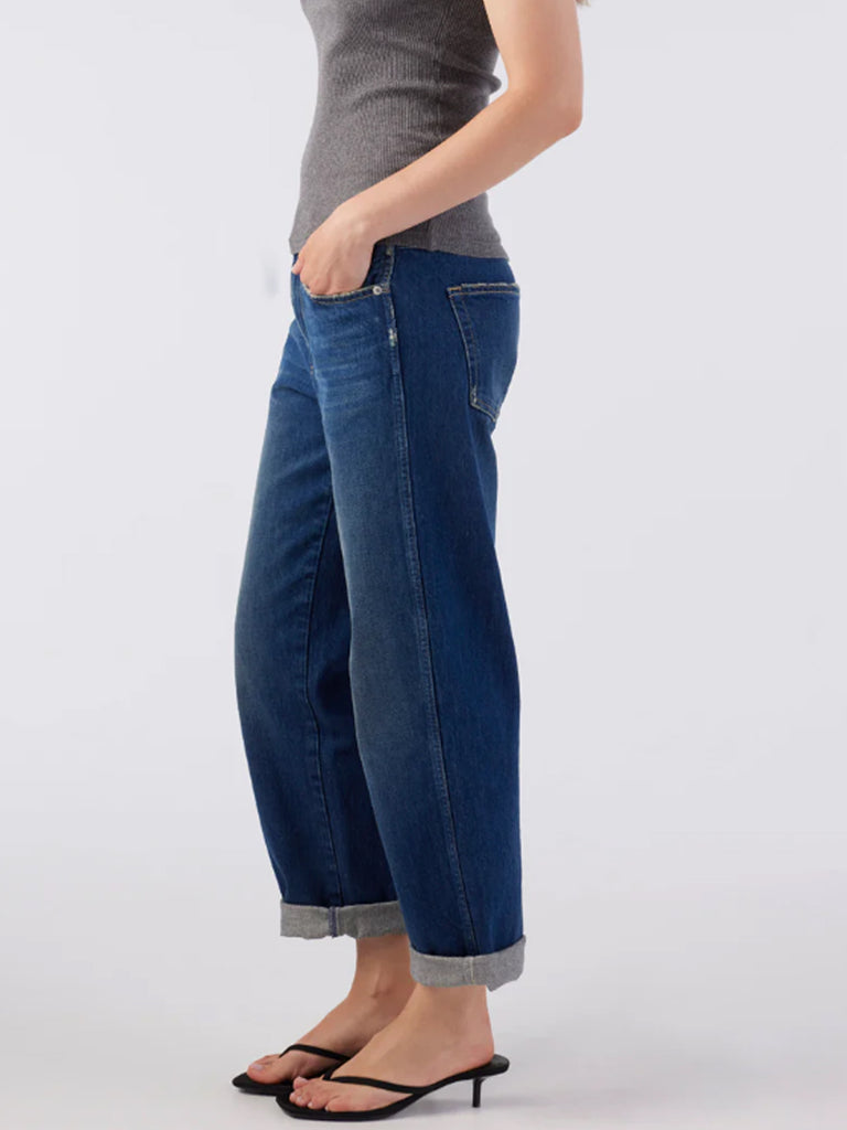 Meet your new favorite mid rise, relaxed straight leg jean. Inspired by our best-seller, the Billie, these jeans feature a more oversized fit as well as a slightly tapered and rolled leg. A fresh twist on a classic fit. Zip fly.