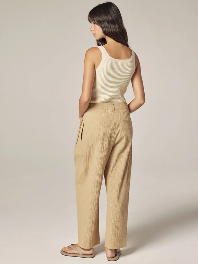 Relaxed tailoring meets everyday comfort in these elastic-back cotton pants. Designed with a softly structured silhouette, the front pleats create a refined shape while allowing ease of movement.