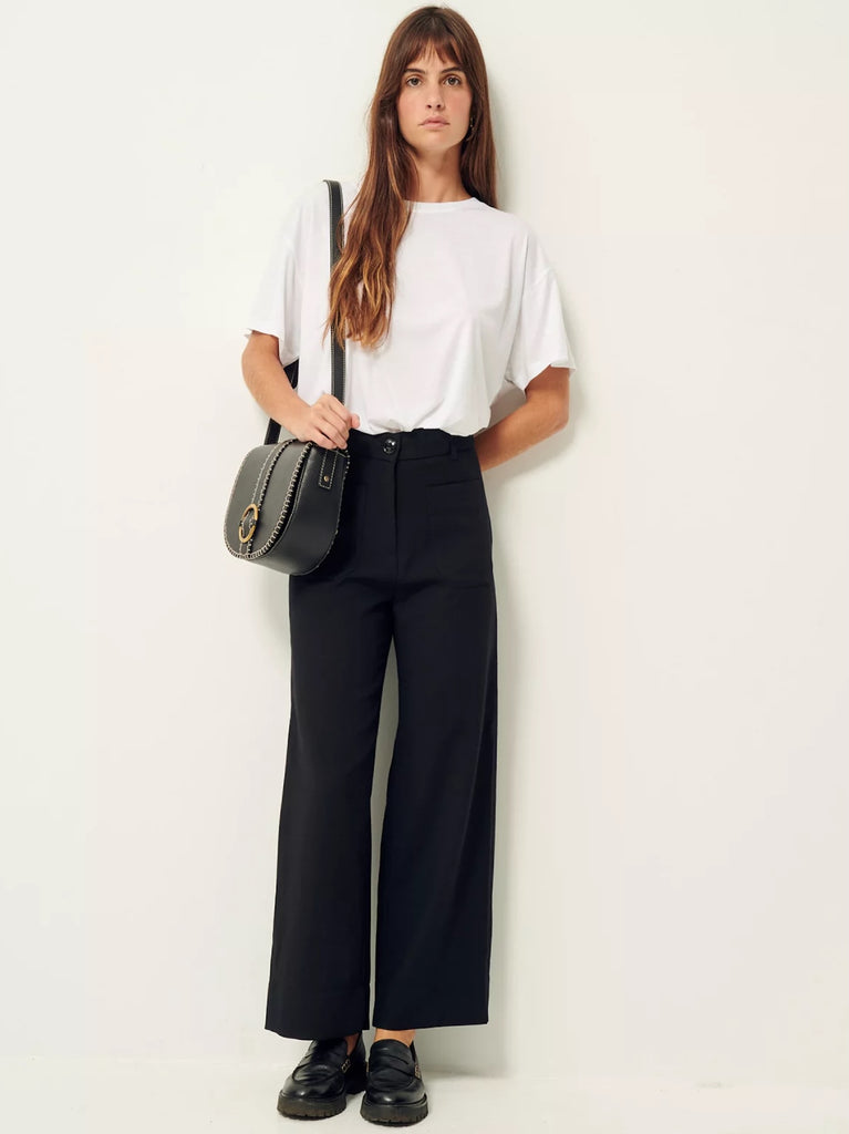 Patch pockets at the front and back. Straight legs designed to ride high on the ankles. 64% Polyester 34% Viscose 2% Elastane.