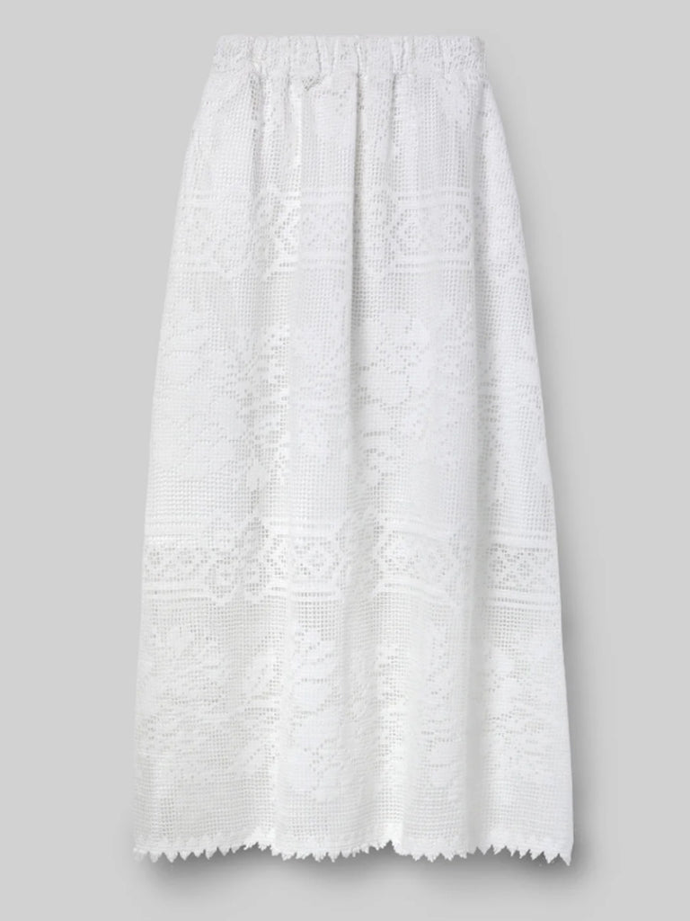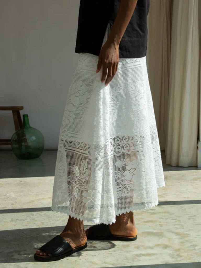 The Lyla-Fay maxi skirt is beautifully crafted from Organic Cotton Lace with a cool 100% Organic Cotton Poplin lining. Featuring a delicate edging detail on the hem. A beautiful addition to your wardrobe. This style does not have pockets.