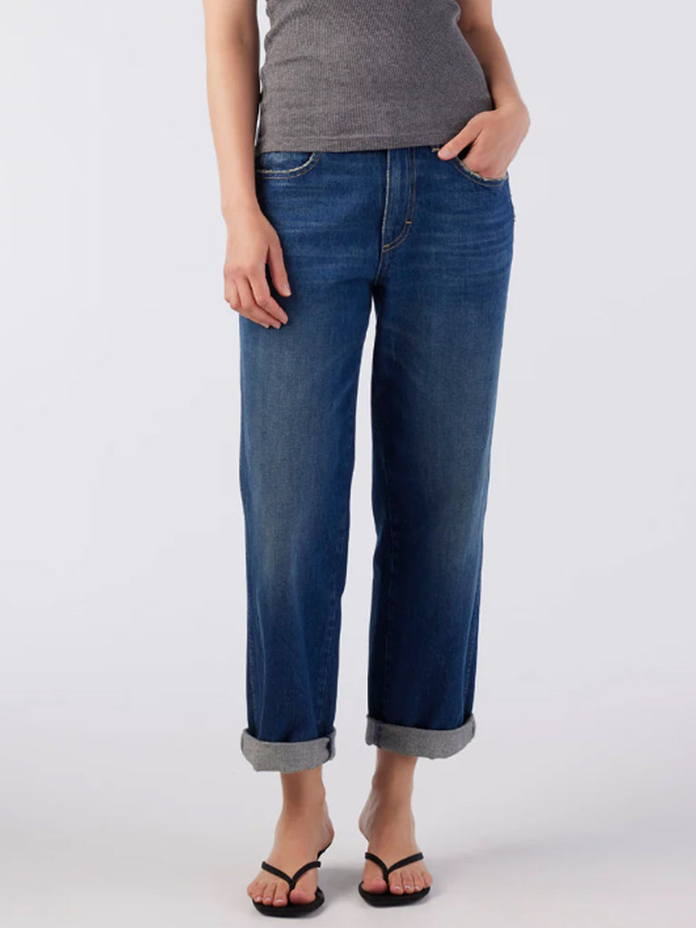 Meet your new favorite mid rise, relaxed straight leg jean. Inspired by our best-seller, the Billie, these jeans feature a more oversized fit as well as a slightly tapered and rolled leg. A fresh twist on a classic fit. Zip fly.