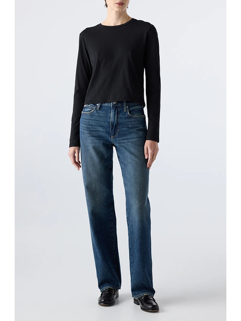 A high-rise straight leg with a subtly slouchy feel. Easy through the hip and thigh, featuring a long inseam that’s perfect for a bit of stacking. Finished with a denim hem. Zip fly. 100% Cotton. Machine Wash Cold. Made with love in Los Angeles.
