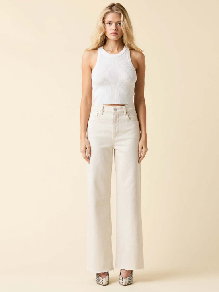 The Column Jean is designed with a flattering high-rise waist, fitted cut through the hips, and finished with a narrow wide-leg silhouette. Endlessly versatile.