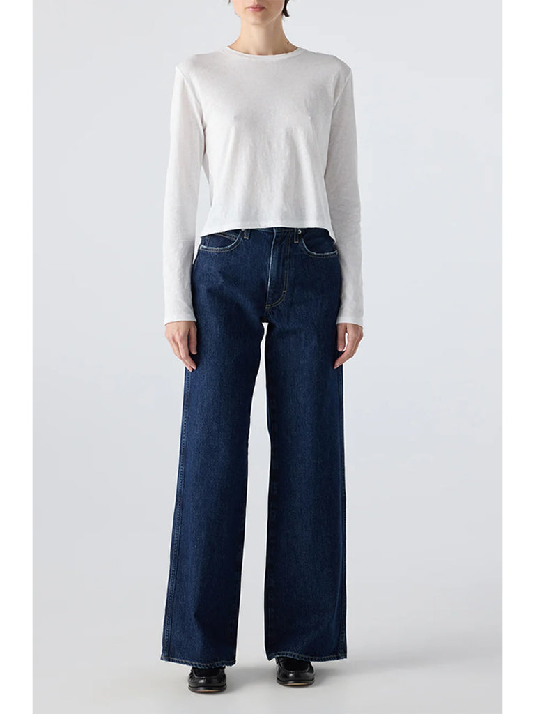 Amo's best selling high rise, wide leg silhouette is back in a dark rinse perfect for the coming season. With an easy fit through the hip and thigh and full inseam, they’re your new everyday denim. Zip fly. 100% Cotton. Machine Wash Cold. Made with love in Los Angeles.