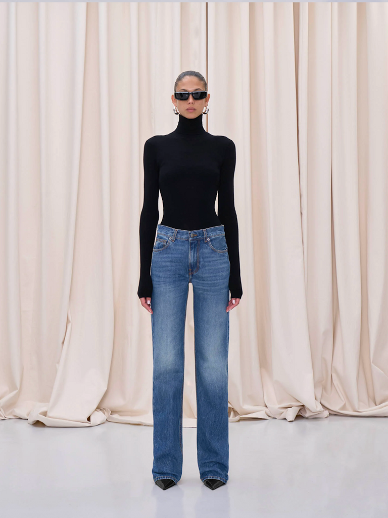 Mid-rise denim, straight leg, relaxed waist. This is a classic, straight leg fit. Note: These run narrow through the hips. We recommend ordering one size up from your regular size. 100% cotton. Made in Italy.