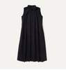 Sleeveless long dress with egg shape and polo collar. 100% cotton poplin. Made in Italy.