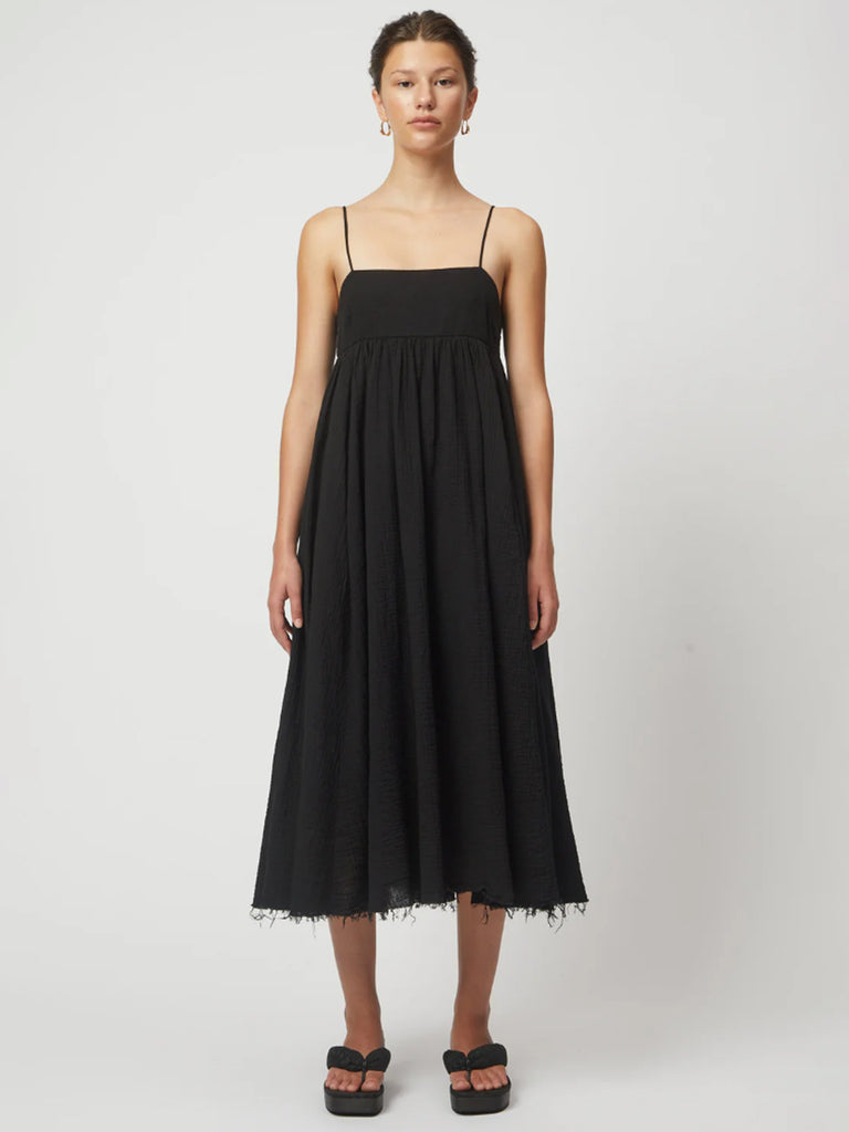 The Arquette Dress is an instant classic in the making. Doubleweight cotton gauze bodice detailing, with an empire waist and doubled crinkle gauze through the skirt for volume, movement and grace. An easy, effortless silhouette that can be dressed up or down.