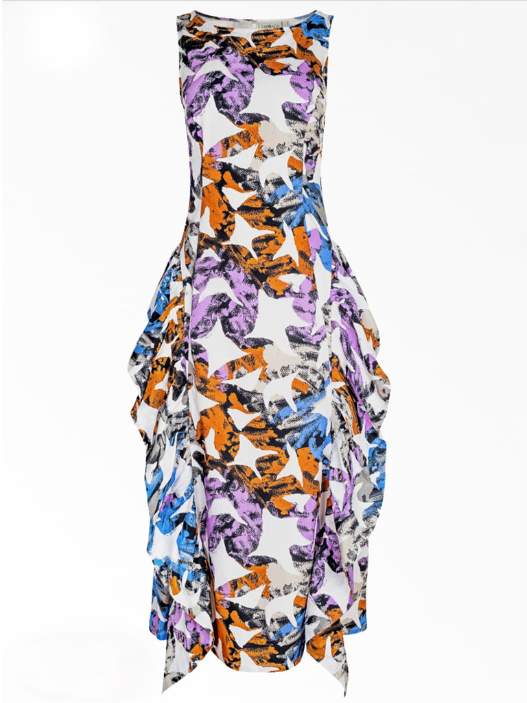 The Palmetta Dress is crafted from crisp 100% cotton poplin and features UIM’s custom hand-painted artwork Hydra. Defined by a sculptural side ruffle beginning at the hip, this fluid maxi silhouette creates movement and drama and is designed to be worn where it can be seen.