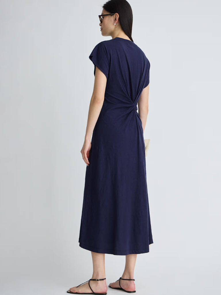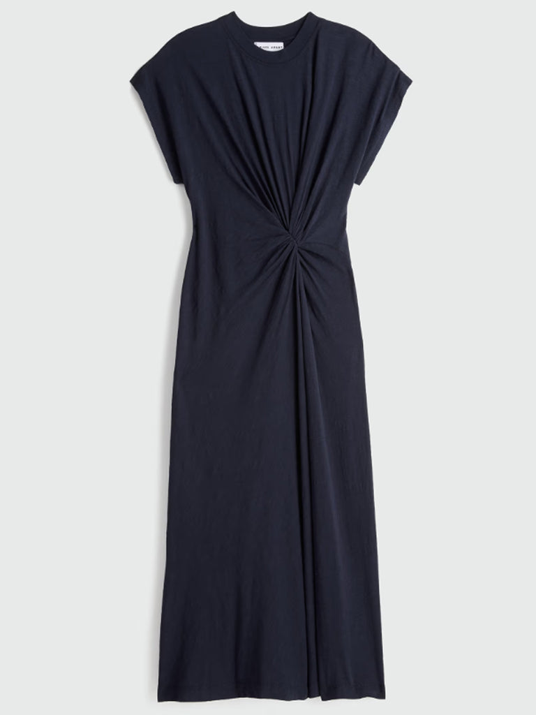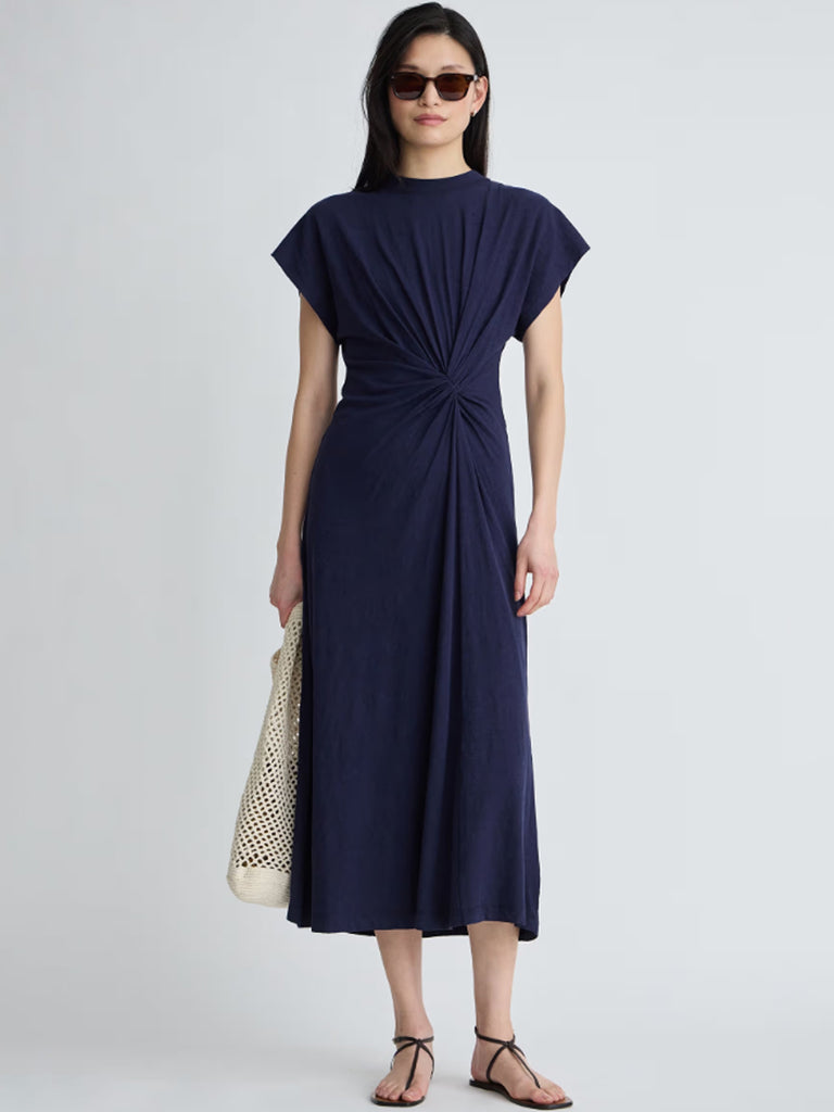 • Crew neckline, rib collar, twist details at front and back, maxi length