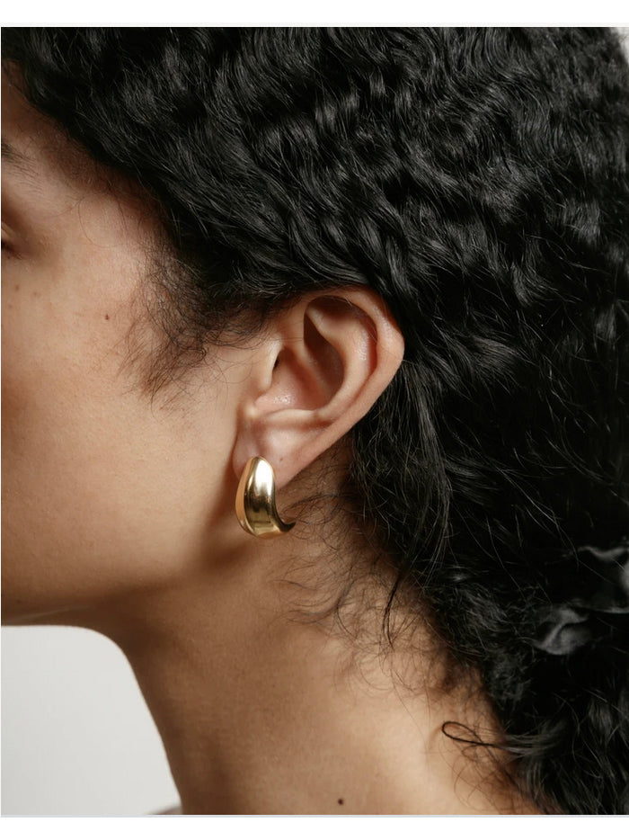 These spined hoops are Wolf Circus' latest twist on the bulb hoop. 14k gold plated over bronze spined hoops. 14k gold plated over bronze sterling silver posts. Measures 25mm length, 13mm wide. Made with recycled metals. Made in Vancouver, B.C.