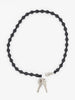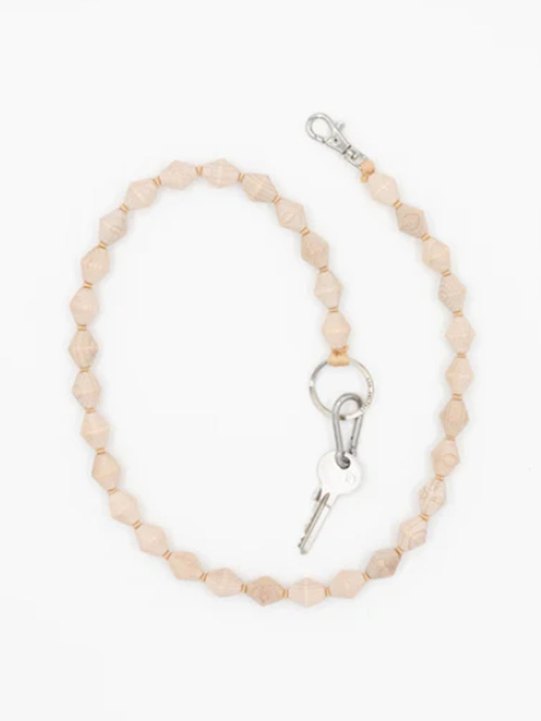 Keychain with elastic band and threaded wooden beads.