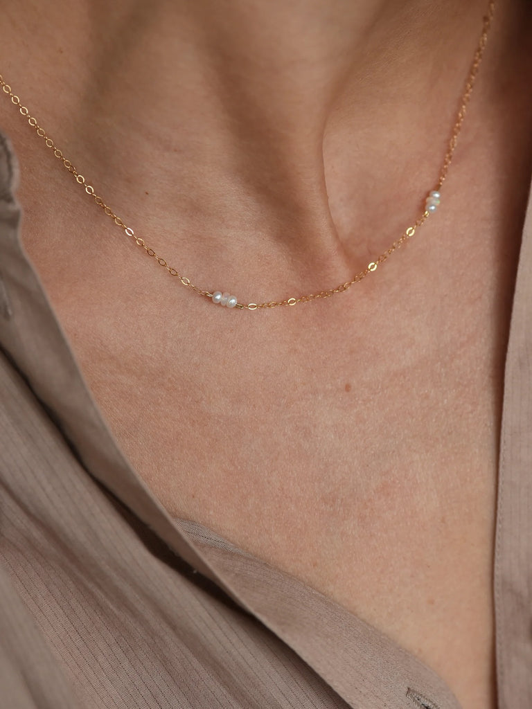 Two pearl/opal clusters on a delicate 14k gf chain. Chain measures 16". Made in NYC.