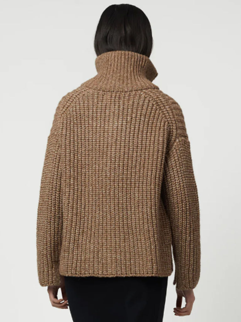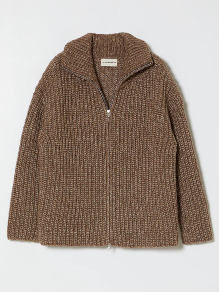 Chunky zip cardigan in our alpaca / pima cotton knit with a versatile two way zip for styling. Contrasting pima and alpaca yarns add breathability to the knit’s coziness as well as textural coloration.