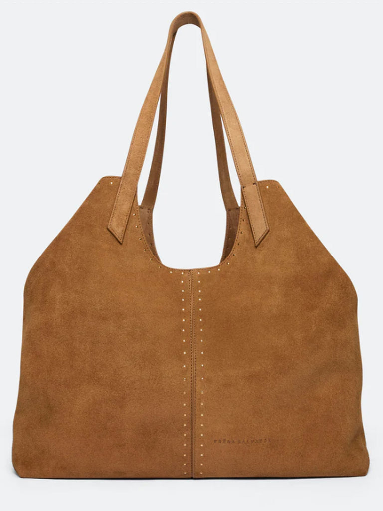 A must-have everyday tote—fits all your daily essentials. Made from 100% Italian suede that drapes beautifully, accented with mini studs. Unlined. Handcrafted in Italy