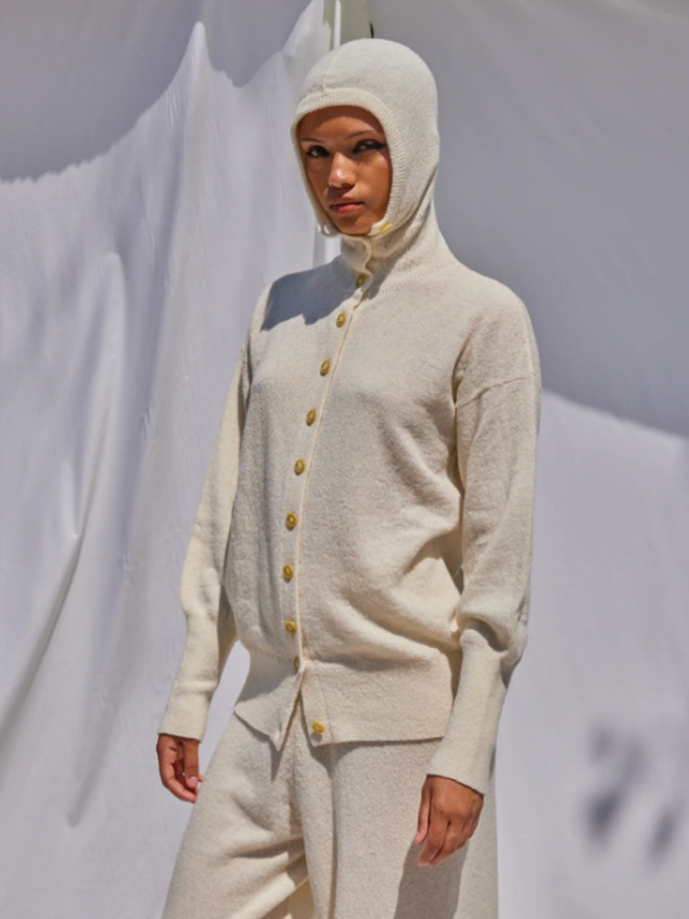 The Lightweight Balaclava Cardigan is a long, relaxed layer with an integrated balaclava hood. Crafted from a high-gauge jersey knit with a super-soft touch, it’s perfect worn on its own or layered under a blazer for a versatile look.