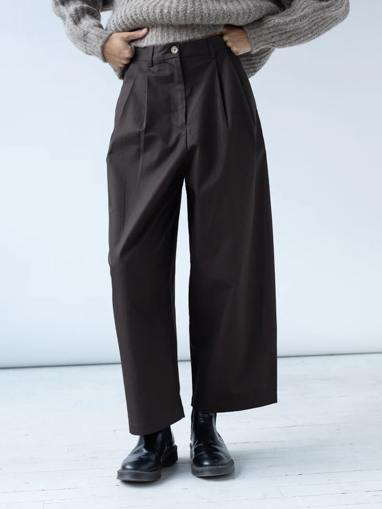 The perfect menswear trouser with an effortless, soft tailored fit. The Boy Trouser sits at the natural waist and has a softly curved leg and relaxed rise featuring front pleats, zip fly and button closure. Made in Japanese BCI Cotton with a durable, structured hand feel.