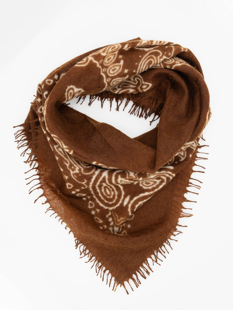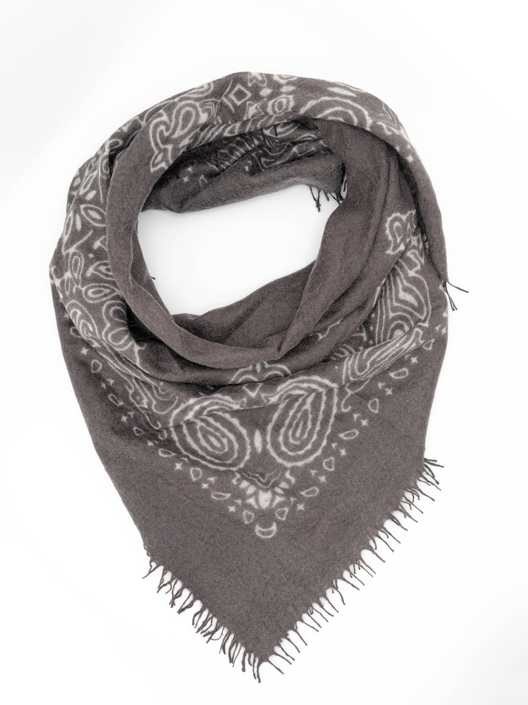 Felted cashmere bandana with fringe. Handwoven in Nepal in the finest cashmere.