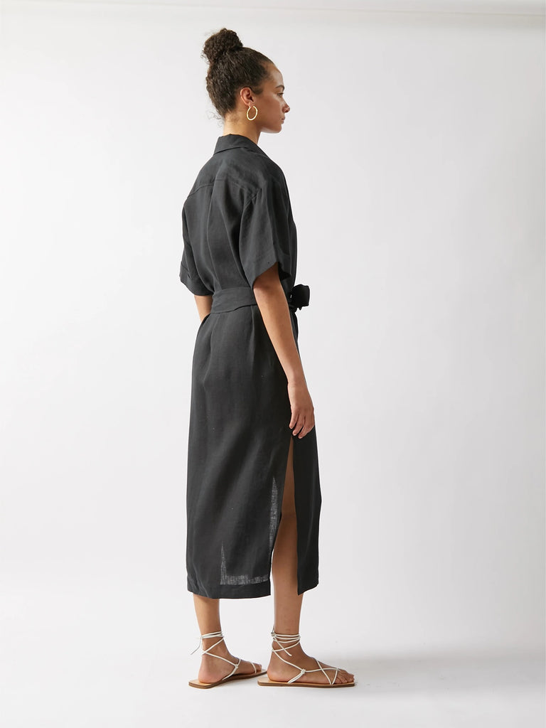 This timeless design is the perfect piece for effortless elegance. Featuring a classic shirt dress silhouette, this midi-length design is tailored to flatter, crafted in our breathable, organic linen.