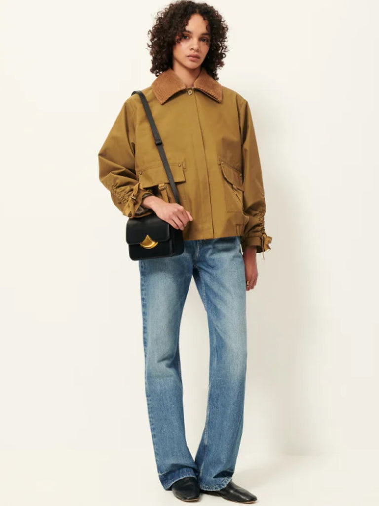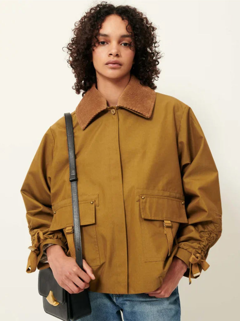 Round jacket with elasticated hem and patch pockets, in tightly woven, lightweight gabardine.