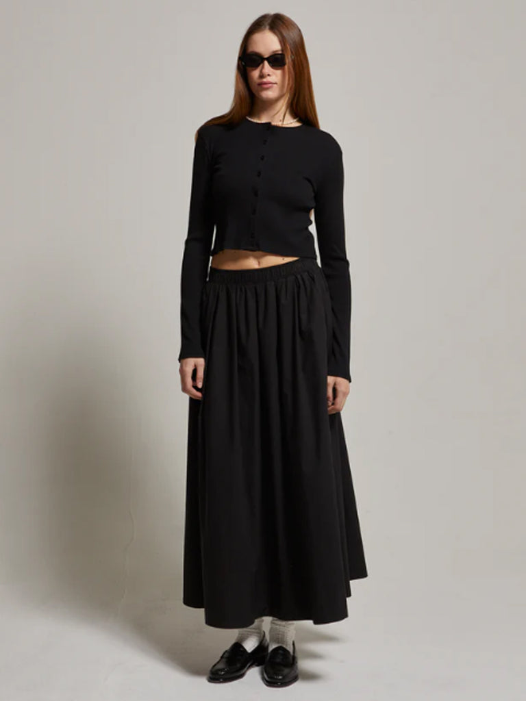 The Kate Poplin Skirt is a standout favorite among our team, celebrated for its dramatic sweep and timeless elegance. Crafted from a structured yet breathable heavy cotton poplin, this piece combines functionality with refined details. Thoughtfully designed, it features discreet side seam pockets, tailored front pleats, a meticulously stitched multi-needle waistband, and a wide-faced hem for a polished finish.