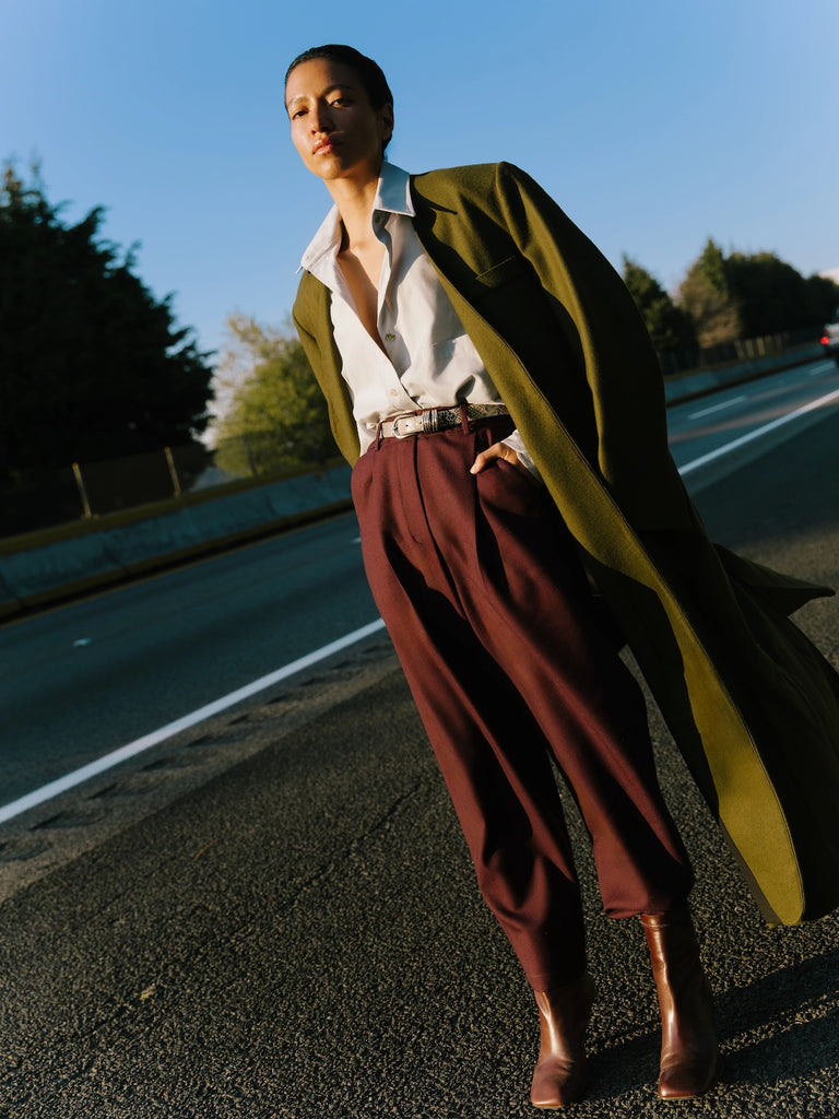 The Long Collarless Coat extends the lines of a blazer into outerwear. Cut in wool, this coat is fully lined and finished with pockets. Style notes: It has an uninterrupted silhouette with a single button closure. A streamlined piece that lends refinement to colder-months dressing.