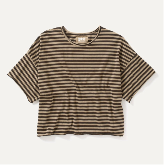 Boxy t-shirt with short sleeves and round neck in striped cotton jersey.