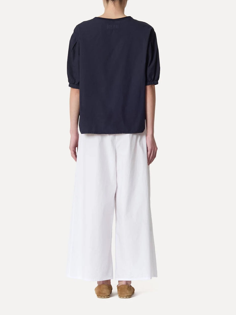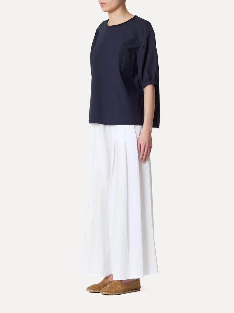 Cotton top with a dropped shoulder with a slight balloon sleeve. Slightly oversize. 100% lightweight cotton poplin. Made in Italy.