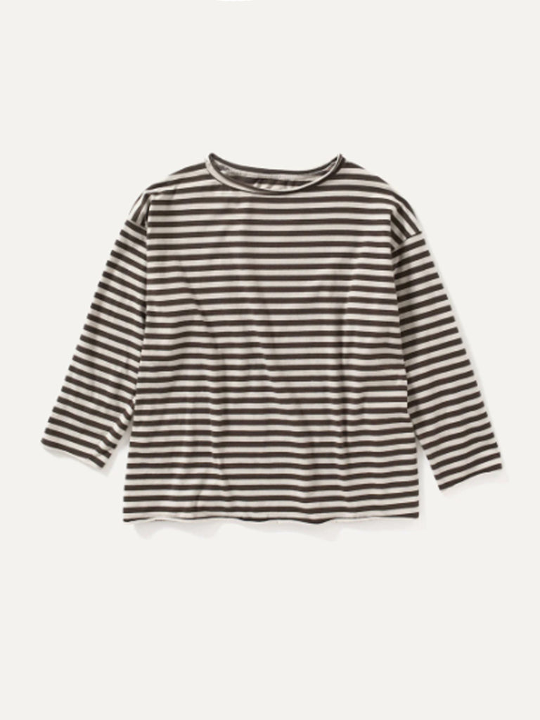 Dropped shoulder, 3/4 Sleeves Top in Striped Elastic Cotton Jersey