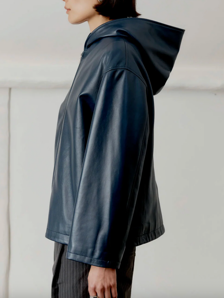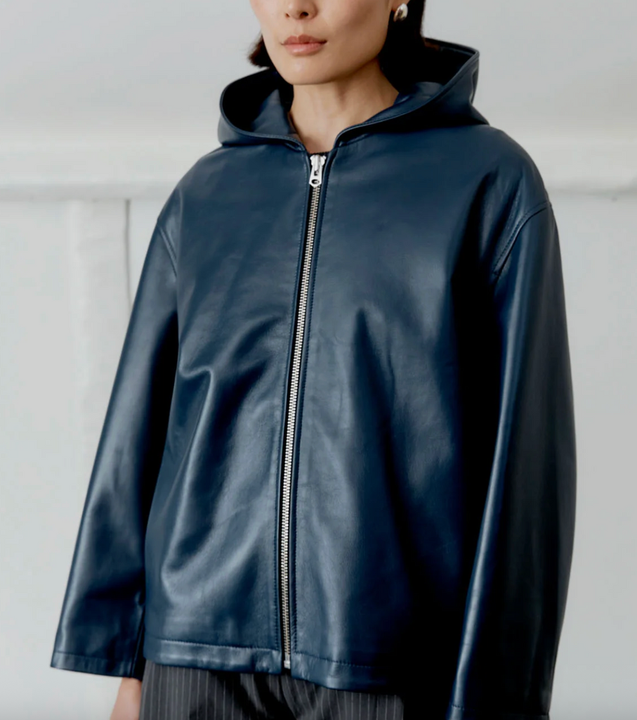 A leather hoodie to elevate your winter-to-spring outerwear. Crafted of supple, soft nappy leather in lined in smooth viscose for comfort. The roomy, zip-front style is finished with spacious side seam pockets for a streamline look.