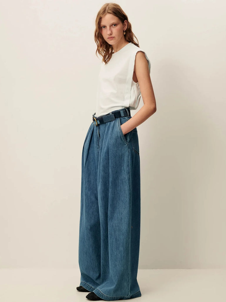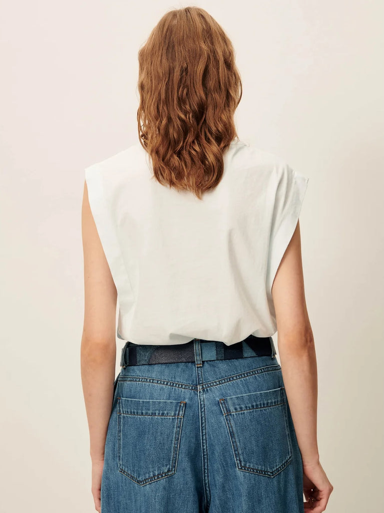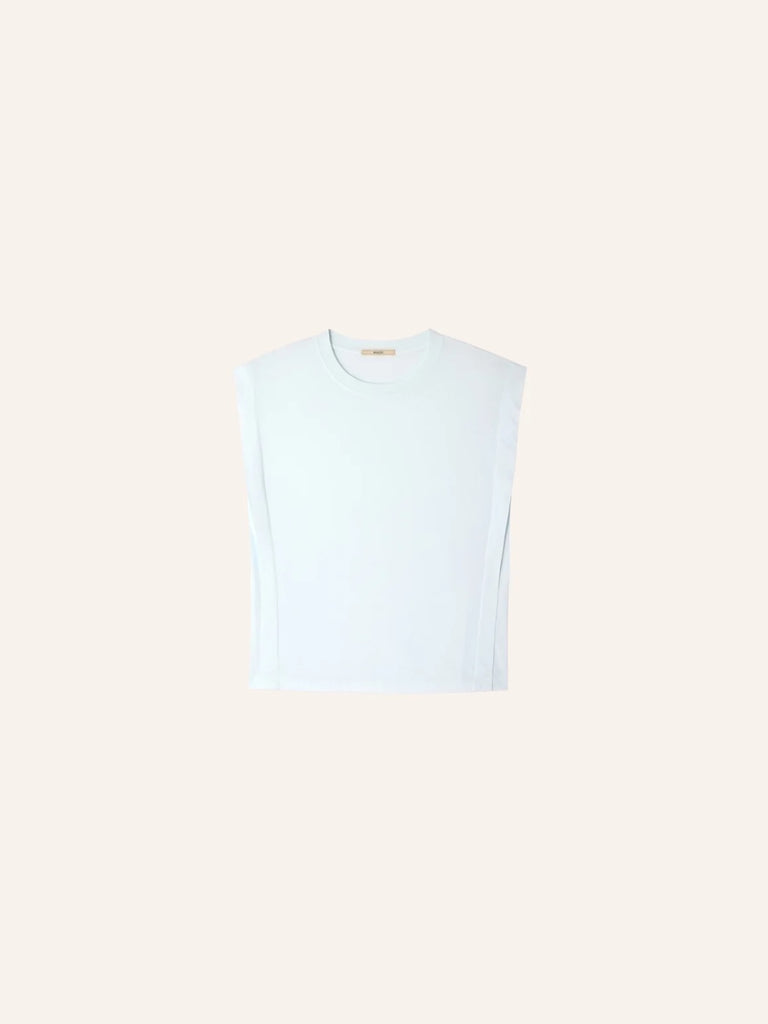 Sleeveless pleated T-shirt in pigment-dyed jersey, hand-crafted and dyed in Portugal.