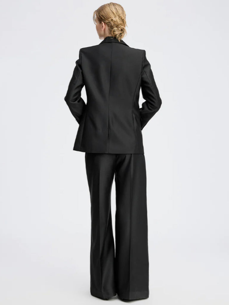 Elegant blazer in beautiful, smooth woven fabric. Designed with a classic lapel, single-button closure, and front flap pockets. The lightly tailored fit creates a sophisticated and timeless look.