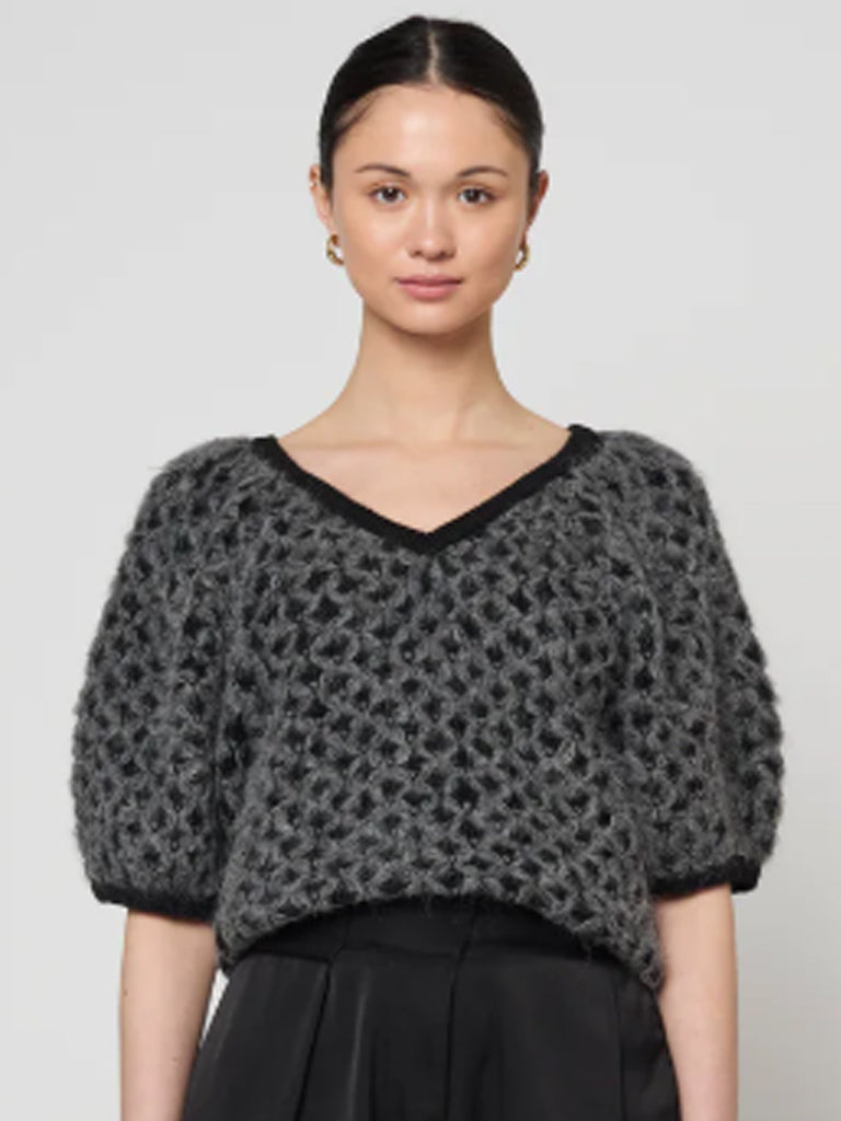 A sculptural knit with a modern ease. The Sanremo Top is designed with a v neckline and voluminous short sleeves; it balances structure and softness in equal measure. The cropped length skims the waist, making it an effortless partner to high-rise trousers, denim, or layered over dresses. Minimalist yet bold, it’s a statement knit for all seasons.