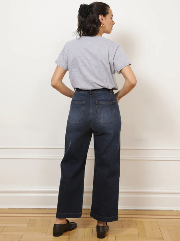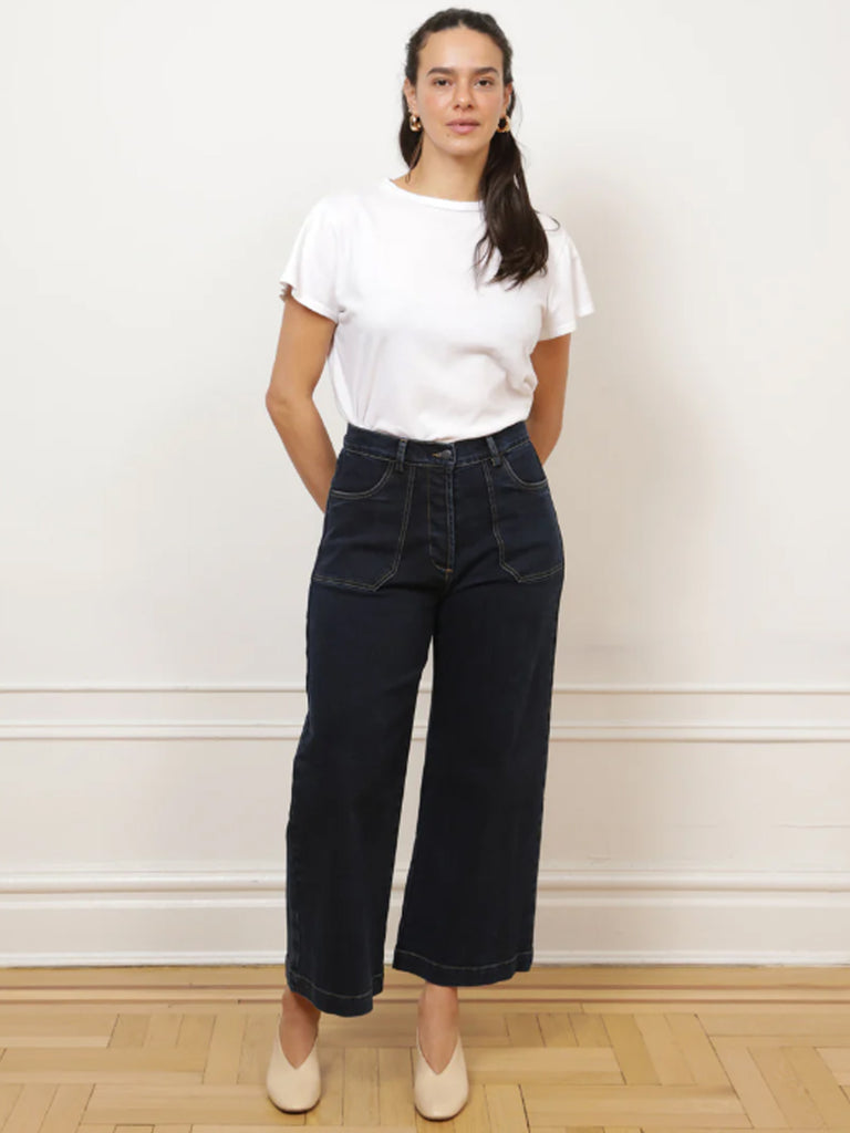 The Simone Jeans are Loup's classic best-selling high waisted jeans. Made from slightly stretchy indigo denim and featuring 1970's inspired front and back pockets, hidden button fly and wide cropped length, these are sure to be your new favorites!