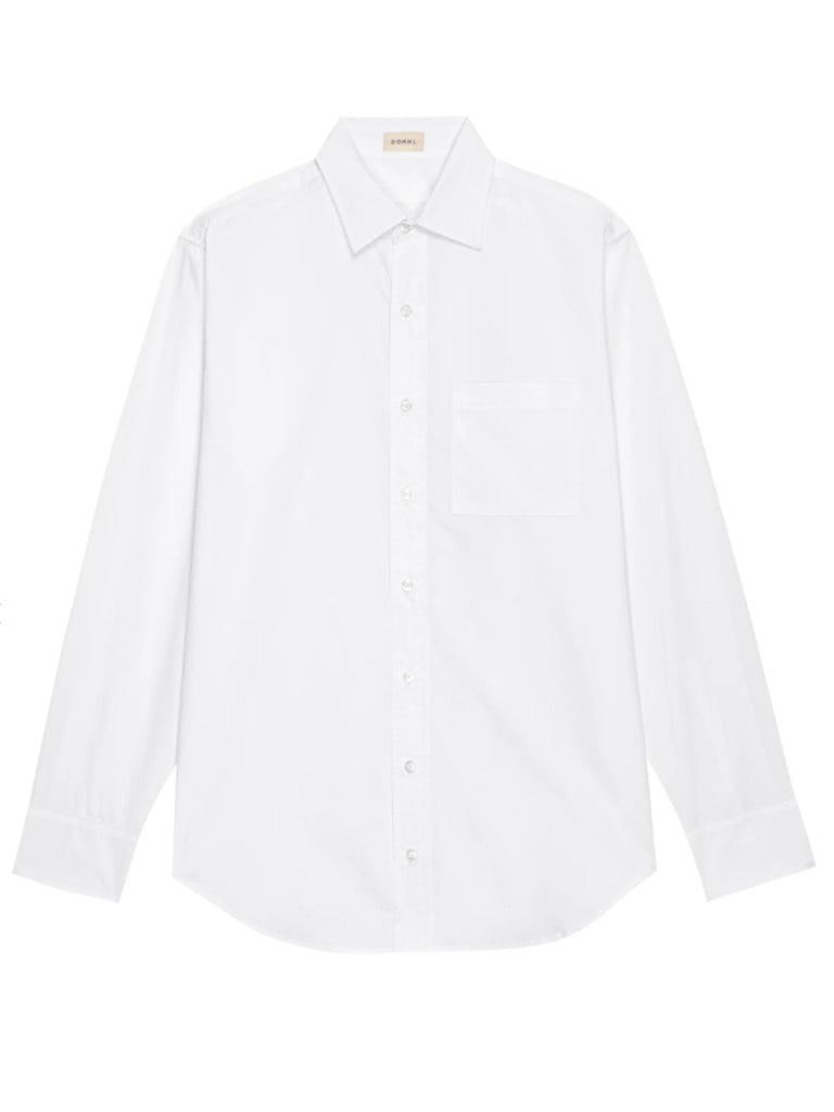 A seasonless essential crafted with 100% cotton poplin, featuring a subtle dropped shoulder and tortoise-like buttons.