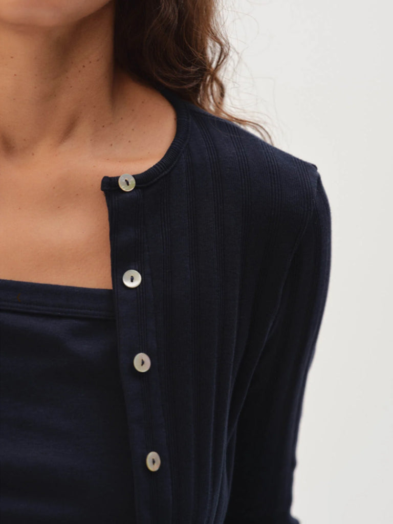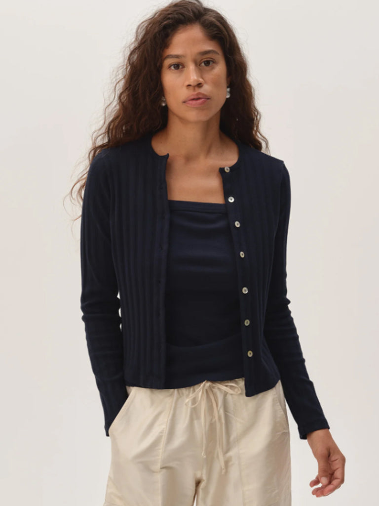 The Varied Rib Cardigan - Navy