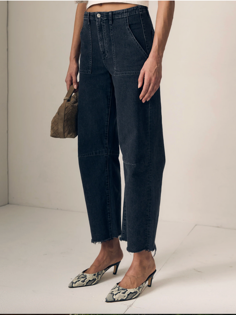 A relaxed wide-straight leg with a curved outseam shape. Cut from denim blended with a comfort stretch. The classic faded black wash makes them endlessly versatile. Made in Los Angeles