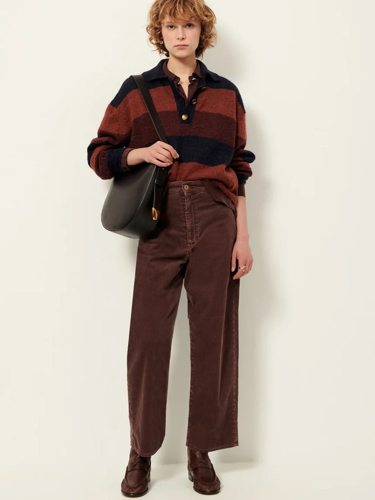Straight-leg trouser with 5 pockets, in pigment-dyed pincord, woven in France.