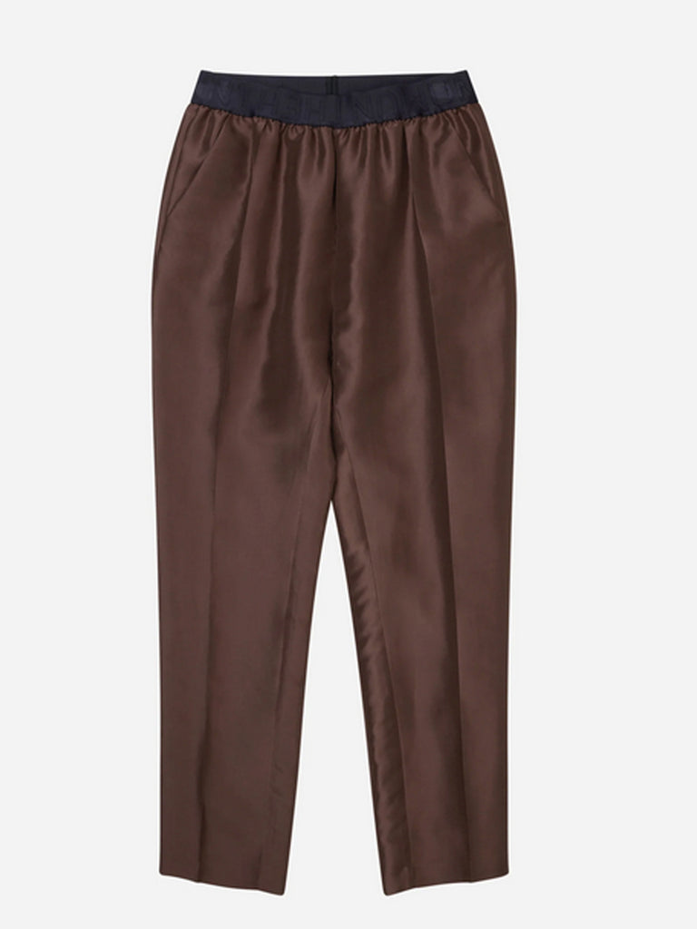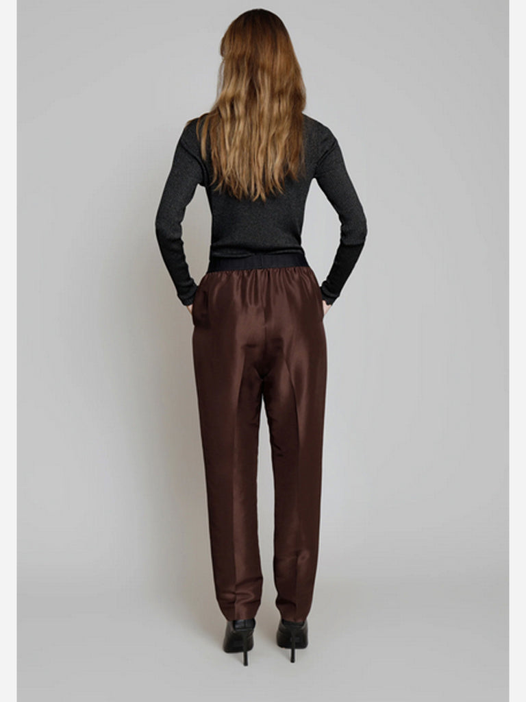 Pants made from 100% silk in a regular fit. The pants have an elastic waist, and have press pleats and pockets on the sides.