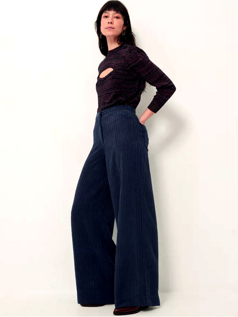 High-rise wide-leg pants in a fluid irregular corduroy fabric.