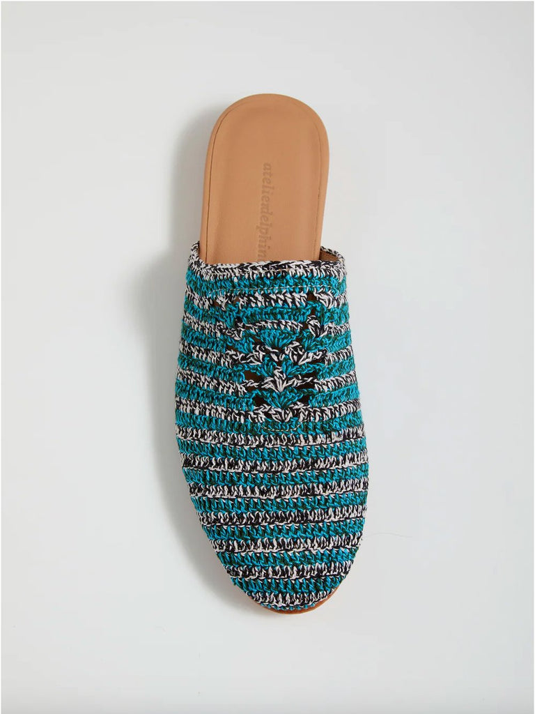 This hand crochet slide adds color and texture to any look. Features a padded footbed and hand crochet upper. 100% Leather. Made in Peru.